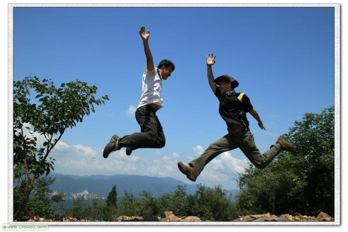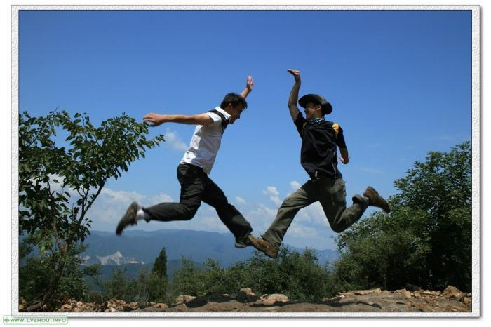 也就是我背后的地方,会想起那次香八拉,那帮可爱的驴友,在此处尽情飞翔的场景,奉上我和老月的空中表演:),
