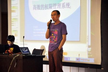 下半场的开始由Ralasafe项目负责人汪金保开场,他带来的是《开源权限管理中间件Ralasafe》介绍,并提供了系统的演讲,该软件基于 MIT协议发布。第二个演讲是淘宝网的Tair项目开发者若海,他为大家带来的演讲是《Tair开源项目介绍 》,目前Tair是淘蝌蚪平台上的一个开源项目,在淘宝网内部,Tair也承担底层系统应用支撑功能。接下来是来自IBM中国研发中心的蔡俊杰先生演讲, 他带来的开源之道,从不同层次介绍了开源软件的文化,发展和应用。第四个演讲是GTUG成员周鼎为大家带来了《GNOME3.0》主题演讲,并详细的介绍 了GNOME3.0的新特性,还带来了系统的演示。最后的演讲是开源力量开发者Gavin和Linux伊甸园创始人石磊的演讲,他们分别带来了《开源CC 实现Enterprise2.0》和《开源与价值》。