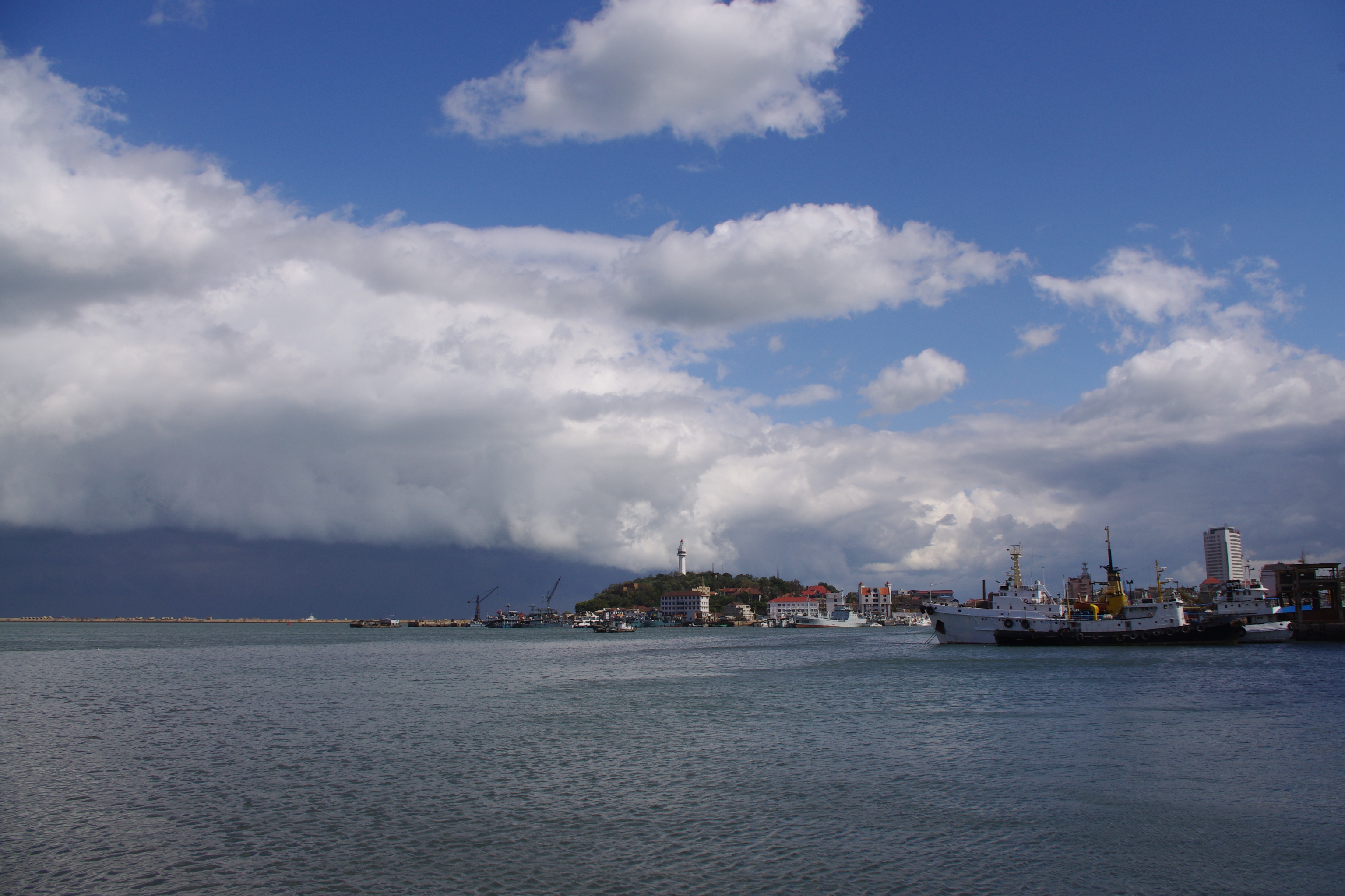 晴日下的烟台港