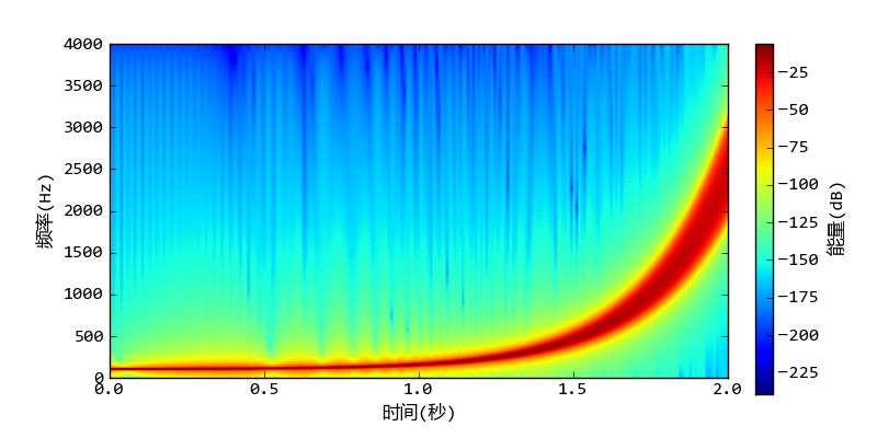 《用Python做科学计算》频域信号处理:频率扫描波的谱图